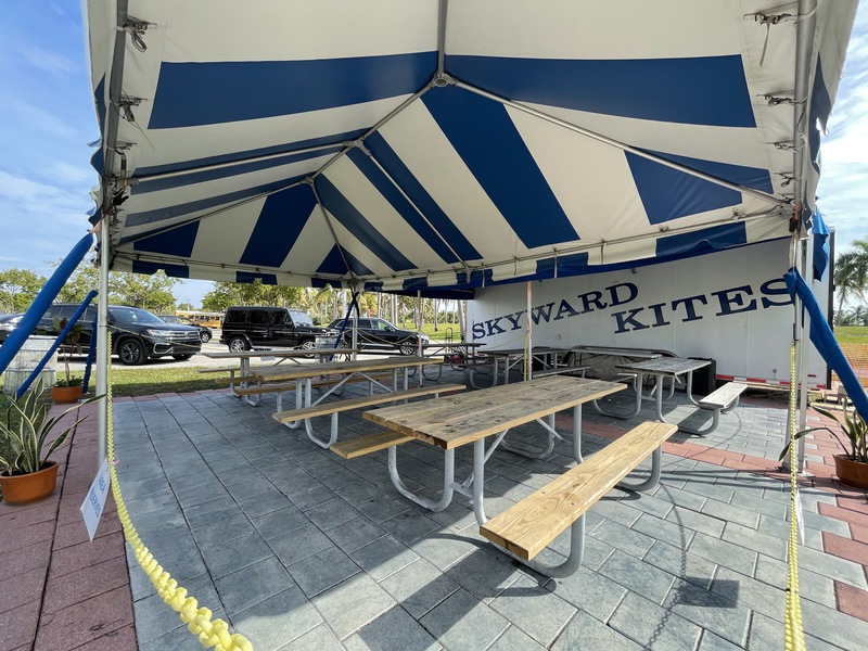 - Six 8' Picnic Tables with Benches (Seats 40 Adult Guest)
